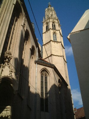とは言うものの、既に中には入れない時間で、外からその教会を見ることしか出来なかった。建物は石組で、他の建物とは異質な感じである。蔦に覆われており、それが古めかしさを助長している。ザルツブルク大司教で塩商人の守護聖人として知られた聖ルプレヒトによって建立、とはガイドブックのガイドである。尚、モーツアルトの生まれ故郷ザルツブルクは「塩の街」の意。