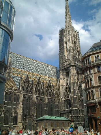 シュテファン寺院は焼失や崩壊を重ねているため、今の姿がいつのものなのかはよく分からない(と言うより知らない)。最初は12世紀建立らしいが、聳え立つ南塔は14世紀のものとのことである。装飾などは中々異様で、迫力がある。