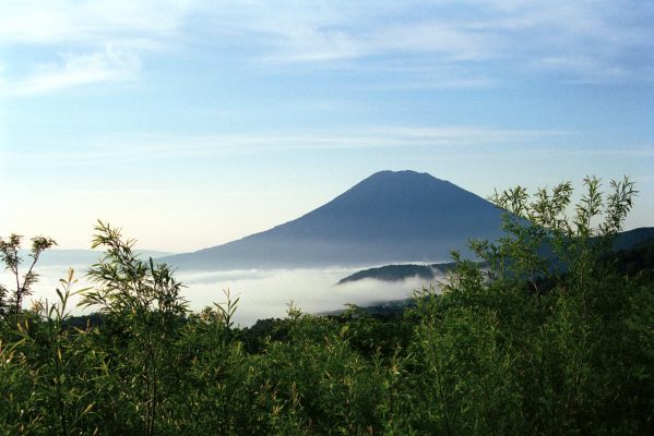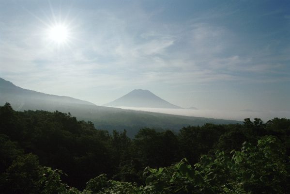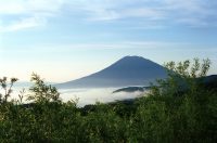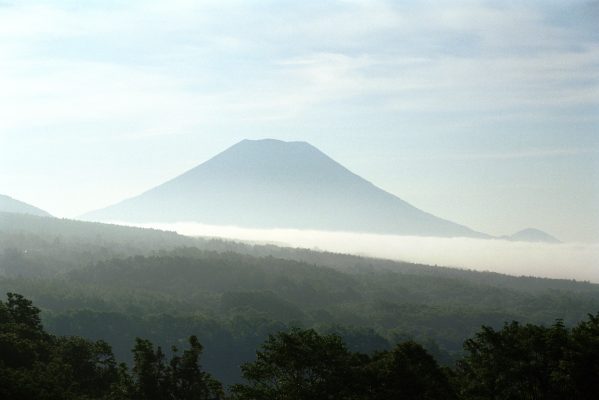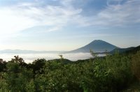 | いつもはずぼらなカメラマンだが、ホテルの窓からの雲海を見て「もっといいポイントがあるかもしれない」と思い、車で撮影に出かけた。ところどころで車を停め写真を撮りまくった。雲海のS字カーブが気にいっている。雲海に浮かぶ羊蹄山も「順光だったらもっとよかったのに」と思うのだが… |