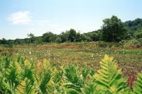 ガイドブックによると「訪れる人は少ない」ということなので、鏡沼を訪れることにした。入口(山道の)付近には車を停めるスペースも少ない。それでもこの日は土曜日ということで何台か車が止まっていた。歩いていても、人とすれ違うことはほとんどなかった。ちょっと暑かったが快適な山歩きだった。地図によると35分の道のりを、ゆっくり写真を撮りながら1時間くらいかけた。