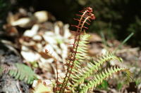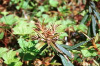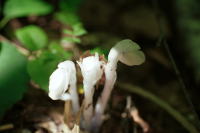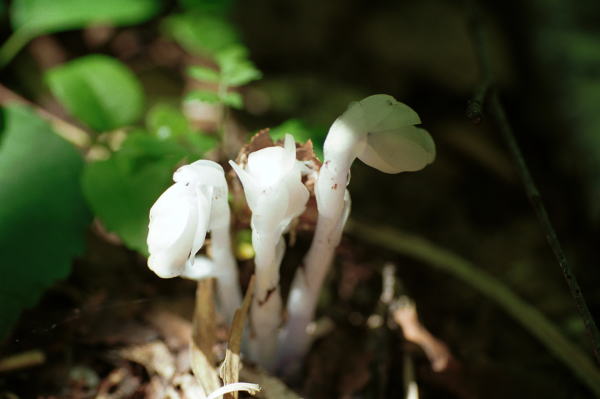 オオバミゾホオズキの黄色い花が山道を楽しませてくれたのだが、日陰に多かったので写真としてはあまり良い出来ではない。ユウレイダケと言われるギンリョウソウをはじめて見た。葉緑素を持たない植物ということだが、真っ白なので、花が咲いているのかどうかもわからない。 |