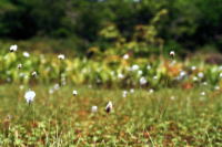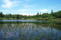 ツルコケモモはカタクリを小さくしたような花だったが、とても小さいので撮影に苦労した。天気がよかったので、鏡沼を中心とした風景が最高だった。 |