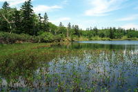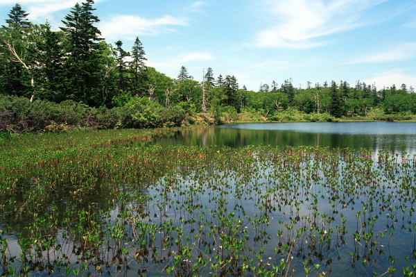 神仙沼は鏡沼よりひとまわり大きく、その回りには池塘がある湿原を備えている。2週間早ければこの湿原でもさまざまな花を見る事が出来たと思う。沼のミツガシワは終わってしまっていたが、池塘にわずかに残っていた。