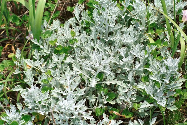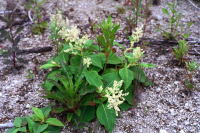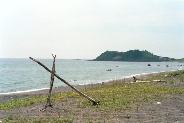 シロヨモギは浜辺の砂地に多く見られる。昨年は鵡川で採取したが、このあたりで採れるだろうと踏んで今年は伊達市で探すことにした。もう慣れたもので国道から海岸へ出られそうな道を選び、シロヨモギを発見することができた。 |