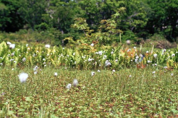 鏡沼には何組かの人たちが景色を楽しんでいたが、静かな雰囲気でとてもよい。ワタスゲの綿が大きくこんなのははじめて見た。この後行った神仙沼のワタスゲもこんなに大きくはないので、種類が違うのだろうかと思う。