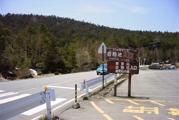 麦草峠の手前で、白駒池に行くために有料駐車場(500円)に車をとめた。ここへ来る途中、高度が高くなるにつれ、残雪が多く見られた。