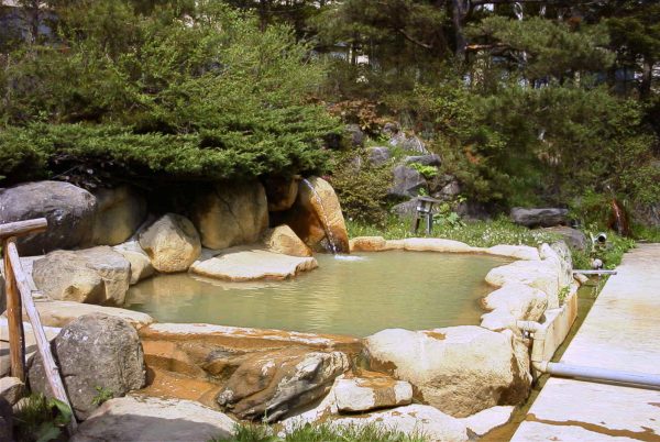 帰りがけ奥蓼科温泉郷にある、渋川温泉保科館で外来入浴。男性用の露天風呂は、開放的でいい雰囲気だった。 |