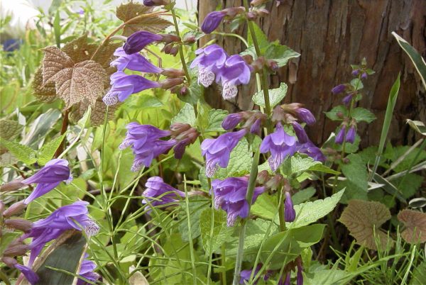 うずら家の駐車場の片隅に咲いていた、ラショウモンカズラ。 |