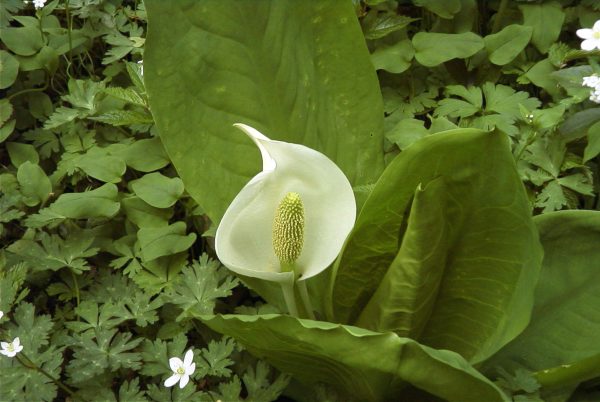 標高1400mの戸隠では、この時期にミズバショウを楽しむことが出来る。そのほかにも、カタクリ、スミレなど花盛りである。戸隠は地区全体が自然植物園のようで、道のすぐ脇にもミズバショウなどを見ることが出来る。