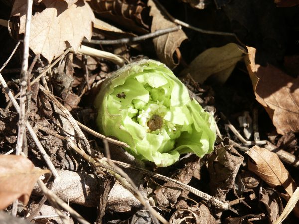 用水路のあぜでフキノトウを見つけることができた。まだまだ出始めで、よく見ておかないと見過ごしてしまう程度しか出ていないが、このくらいのちょうど食べごろサイズだった。持ち帰り、春の香をてんぷらにしていただきました。 |