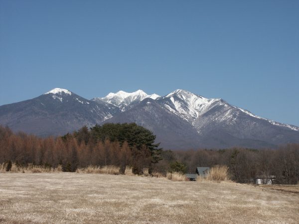 この日は天気に恵まれ、昼を過ぎてもこのように雲が出ず、夕方まで快晴だった。雪をかぶった雄大な八ヶ岳の全景を撮れたのは初めてだろうか? |
