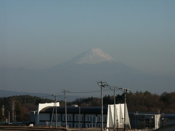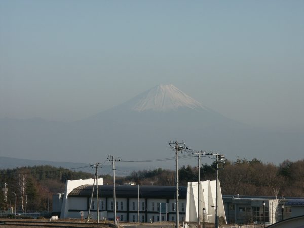 肉眼では富士山がきれいに見えるのだが、春霞がかかってしまうので写真にするとこんなにぼんやりしてしまう。 |