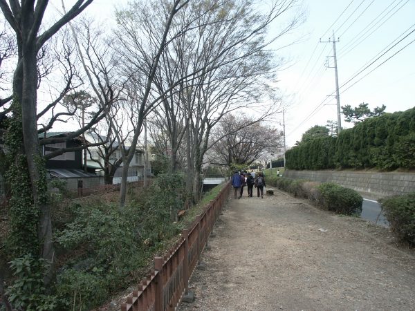 三鷹駅北口を出ると山桜の見事な(確か桜通りといったと思うが)通り沿いに、玉川上水が流れている。このあたりは駅に近いせいもありお世辞にもきれいとはいえないが、しばらく行くと玉川上水の脇は写真のような土の遊歩道になる。舗装路と比べれば多少歩きにくいが、健康のためにはこの方がいいと思う。確かでこぼこした道を歩いた方が土踏まずの発達に良いと聞いたような気がするのだが… |