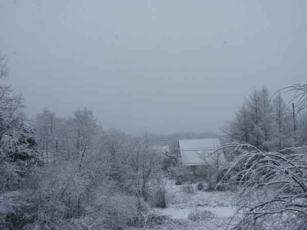 「雪!」の声に起こされ、外を見ると一面の銀世界。予報は雨だったが明け方から気温が下がり、雪に変わったようだ。