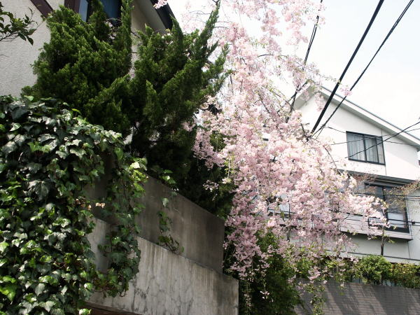 中目黒を出発して5分くらいで住宅街になる。上目黒三丁目のこの家のしだれも満開を迎えきれいだった。 |