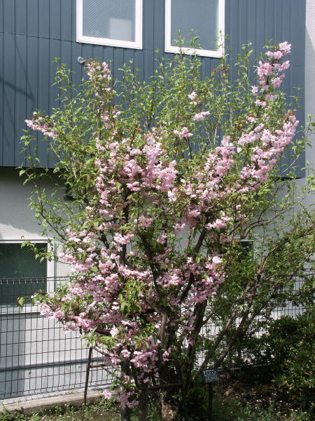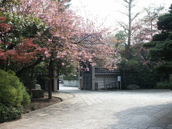 カイドウ等いろいろな花がある。このカイドウは上目黒五丁目あたり。 |