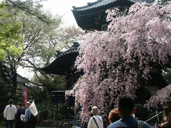 世田谷区下馬四丁目、世田谷観音のこのしだれは見事だった。この日はインド風の音楽の生演奏をしていた。 |