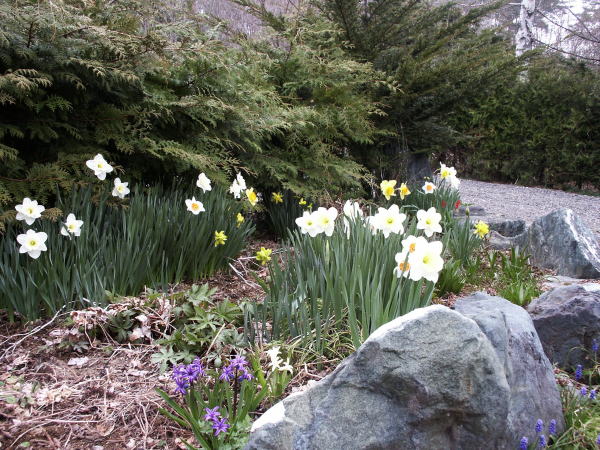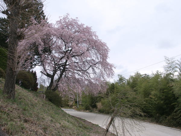 標高1000mあたりにある知人の家ではまだ桜には早く、スイセンや梅が花盛りだ。近くにある枝垂桜の巨木「神田の大糸桜」はこの日満開だった。 |