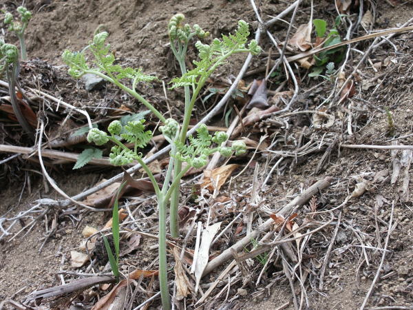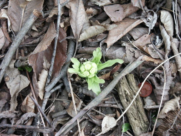 フキノトウはのびきってだめだろうと思っていたが、北側斜面ではまだこんな食用サイズを見つけることができた。ワラビ、フキノトウはこのあと夕食の主役になったのは言うまでもない。