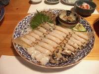 | タクシーで健軍終点まで行き、今日の夕食は海鮮居酒屋漁場。この日仕事を早めに終わらせて駆けつけてくれた友人Yの、高校時代の同級生のお店。料理はどれもすばらしい! ここでカワハギの食べ方をめぐり、Mさんともめる。肝をお酒でときたいMさんに対し、わたしはそのまま刺身に乗せて食べたい。おいしいものを目の前にして、わがままを通させてもらいました。うまいものを食べ、焼酎をたらふく飲んで、気分は絶好調でした。 おなかいっぱい食べても〆はやっぱり熊本ラーメン。火の国 文龍のラーメンは、おなかいっぱいでも食べ切れてしまう! このあとタクシーでホテルへ帰り爆睡!! |