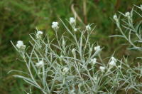 高瀬川支流の籠川の河原に、毎年お盆時期にちょうどよい具合のカワラハハコがある。白馬のものとはちょっと時期がずれていたりするので、まずはこちらのカワラハハコをチェックに行った。 |