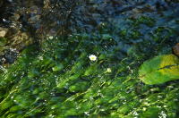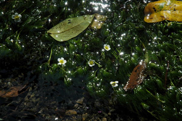 | 親見湿原と姫川源流はすぐ隣にある。親見湿原は居谷里湿原と比べるときが少なく明るい。明るい分だけ写真は撮りやすいが、なかなか面白い写真にはならない。この時期はサワギキョウがそろそろ終わりに向かっていたが、数が多いのでなかなかの壮観だった。 以前、親見湿原を訪れたときには行かなかった姫川源流ではきれいな流れの中にかわいらしいバイカモを見た。寄ることができず、またコントラスト強いのでなかなか写真にするのはむずかしい。もう少し長いレンズで、三脚を立てて撮るべきだろう。しかしこのむずかしい条件の中で、この写真が撮れるD70はすばらしい。 |