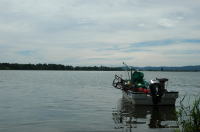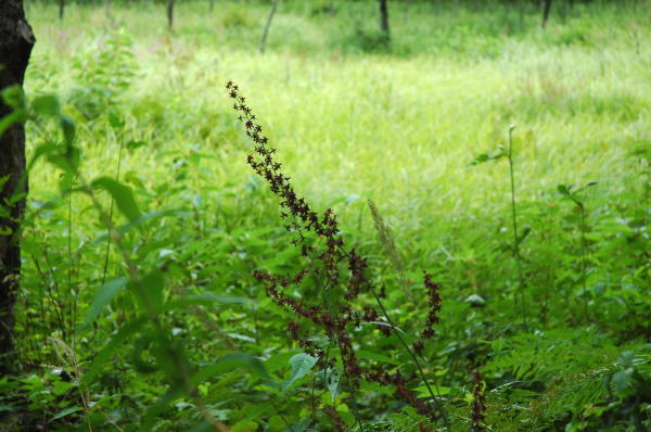 地図で魅力のありそうなところをさがし、女満別湿生植物群落を訪れた。網走湖のほとりにあり水芭蕉の頃ににぎわうような雰囲気だった。木道が整備されているのだが、草が伸び放題で、ところどころを木がとうせんぼしていた。我々のほかに訪れる人はいなかった。 |