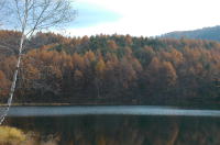 二日目は近場の温泉。奥蓼科温泉郷へいった。写真は御射鹿池。東山画伯が「白い馬の見える風景」で有名だそうだ。車を止めるスペースは無いが、交通量が少ないので、道路に止めて写真を撮った。 |