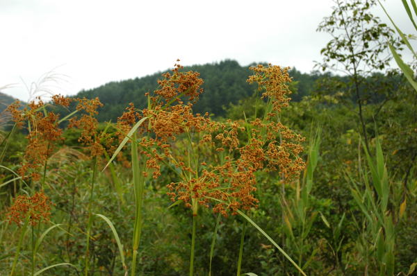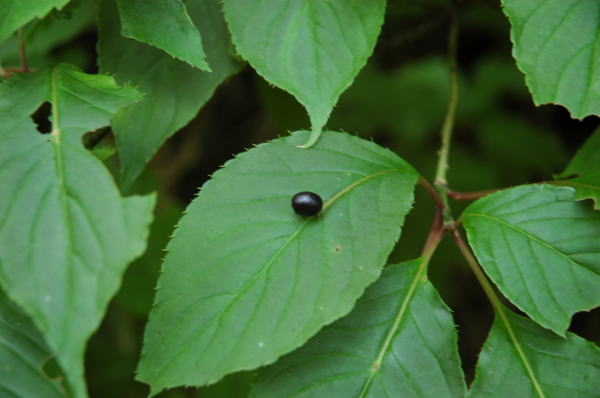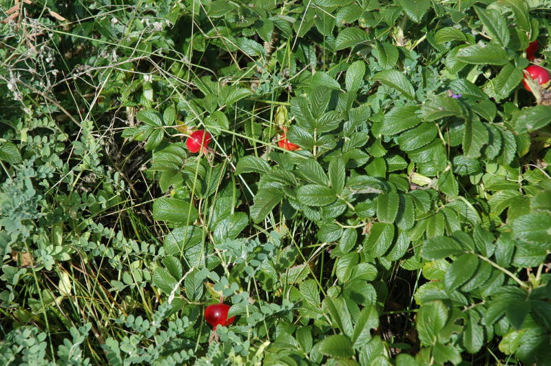 はじめの目的地、卯原内のサンゴ草群生地。ちょっと早いかと思いきや、結構きれいなサンゴ草を見ることができた。写真は日があたっているので鮮やかな赤に見えるが、この後日が翳ってしまってからの写真は鮮やかさはなかった。すぐに雨が降り出し、追い立てられるように卯原内をあとにした。 |