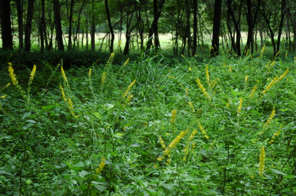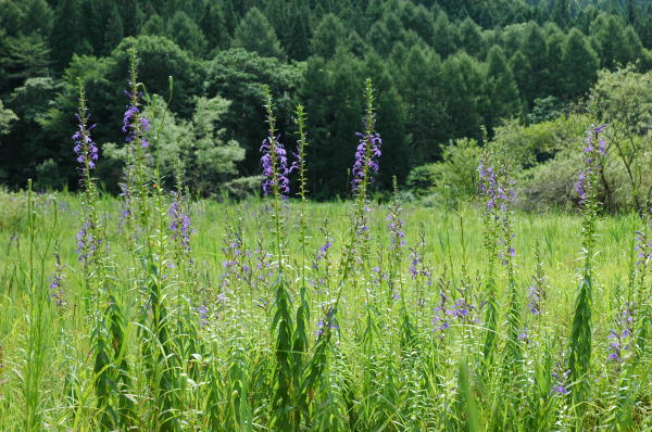 | インターネットで調べていて今回はじめて知った唐花見湿原へ行ってみた。大町市の隣の八坂村にある。 紹介されていたとおり、観光化されていない湿原だったが、結構大きな木もあったりして、これまで訪れた湿原とは趣が違っていた。 |