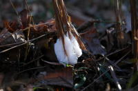| 園内の「武蔵野植物園」にもシモバシラあることはわかっていたので、行ってみた。「やった、さっきより立派!」。写真を撮っているうちに朝日があたり始め、「なかなかいいんじゃない」という写真が撮れた。満足!! | ||||||||||||||||||||||||
