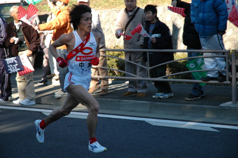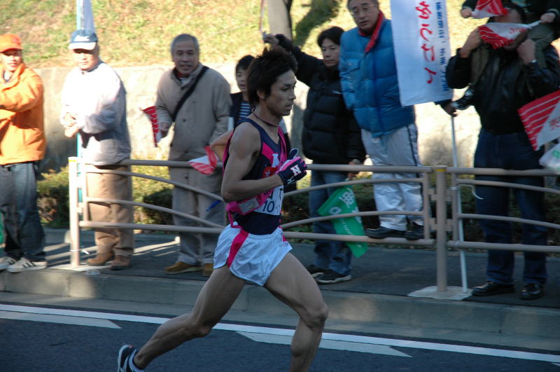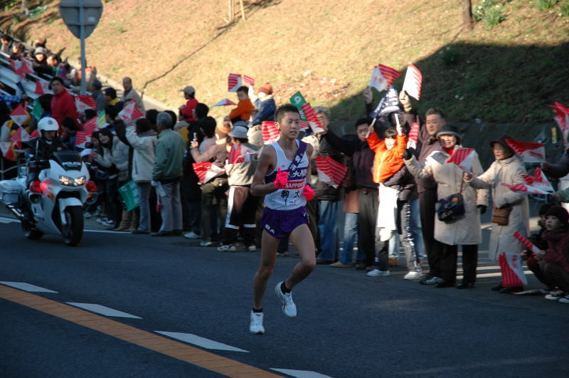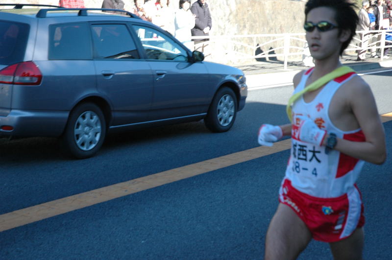 | 復路は反対車線に陣取ったこともあって、そこそこの写真を撮ることができた。でも駅伝の選手は結構速いので、いい写真を撮るのはなかなかむずかしい。写真を撮ることと、テレビに映ろうとするのと、二つを追いかけるのがいけないことはわかっているのだが・・・。 |