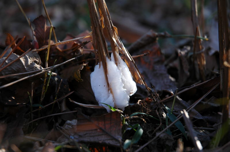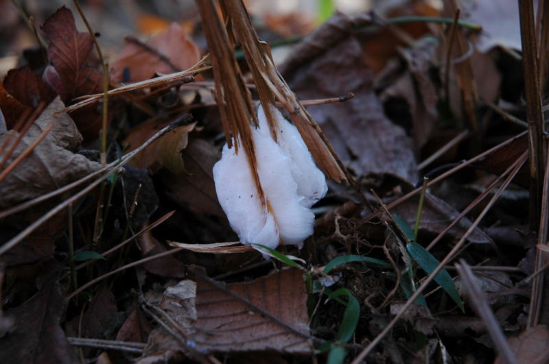 | シモバシラは正門付近にあり、しっかりと霜がついている。「やった!」と思ってカメラにおさめた。 | ||||||||||||||||||||||||