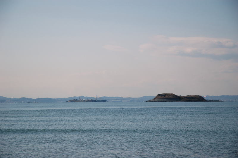 富津岬時間に余裕がある(と思っていた)ので、富津岬へ行ってみることにした。東京湾に突き出したこの岬は360°見渡すことができる気持ちのよい場所だ。東京湾をはさんで向こう岸に、横浜のランドマークタワーやベイブリッジを見ることができる。 |