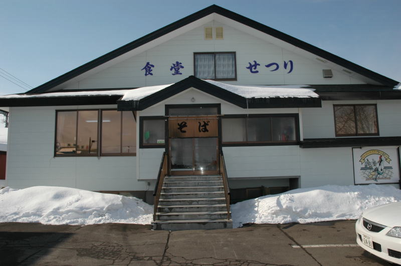 | このあと鶴居村へ移動した。カーナビが連れて行ってくれるものと考えていたのだが、冬の北海道ではそんなことは非常識だったようだ。カーナビで設定されるルートは冬場の通行止めが考慮されない。カーナビに頼りながらも地図で道を確認して、鶴居村へ到着した。 昼食は食堂せつり。蕎麦はもり蕎麦と自家栽培のそば粉をつかった「地場産そば」があった。地場産そばは信州蕎麦のような洗練されたものではなく、挽ぐるみを使ったこしのあるしっかりとしたそばだった。これはこれで味わいがある。豚ドンは山椒がきいてなかなかの美味! |